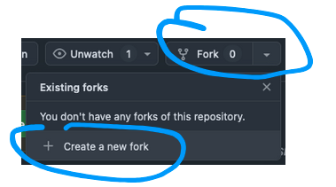 Once you’re there, click on the Fork button on the top right, then Create a new fork.
