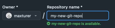 You’ll be brought to the “New Repository page” to name and create your remote repository. I already called mine “my-new-git-repo” on my local computer, so I'll do the same here: